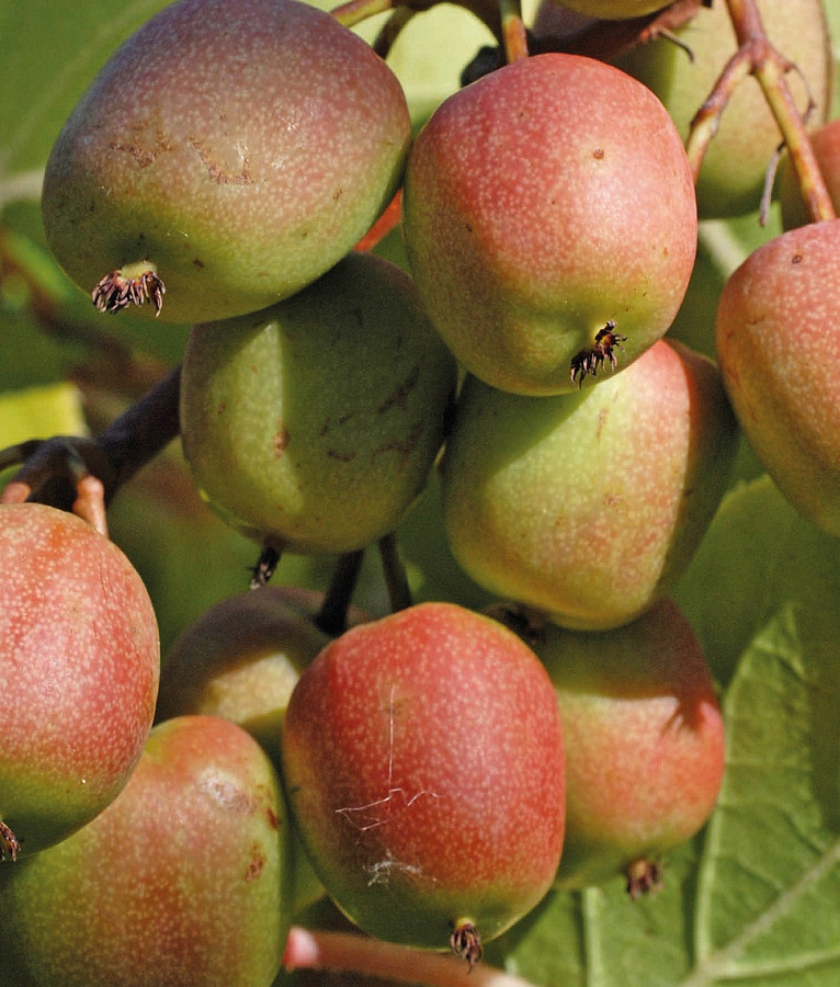 Саженцы Актинидии Аргута Женева (Geneva) – интересный женский сорт, отличающийся медовым послевкусием, декоративностью плодов (наличием румянца), морозостойкостью и устойчивостью к заболеваниям. Срок созревания – ранний, созревшие зеленовато - красные плоды можно получить уже в сентябре.