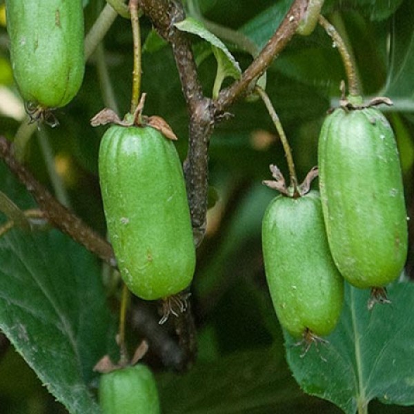 Саженцы Актинидии Коломикты Находка используются садоводами для вертикального озеленения и получения вкусных и полезных плодов зеленого цвета в начале осени.