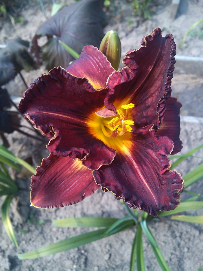 - невосприимчивость семян к бактериям. Цветущее растение представляет собой раскидистый куст с высокими цветоносами и крупными бутонами темно-фиолетового оттенка. Контраст темным лепесткам и практически черному глазку создает сочное лимонное горлышко. Лепестки имеют гофрированные края и тонкую кайму белого цвета. Первое цветение лилейника Пурплликоус можно наблюдать уже в июле месяце.