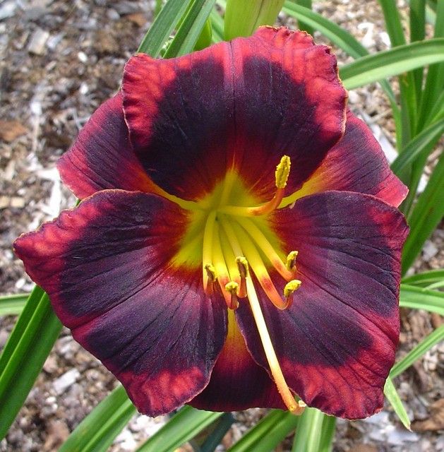 Окраска цветка : тёмно-пурпурный с тёмным глазком и зелёным горлом