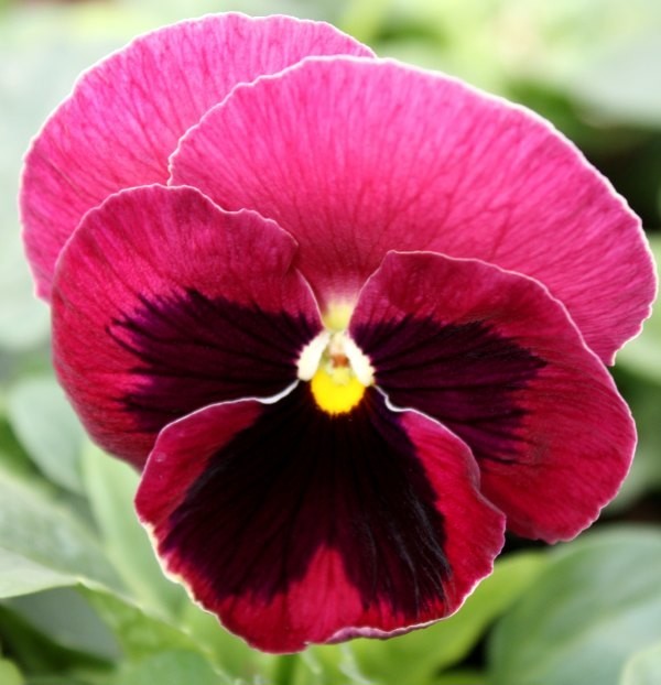 Виола крупноцветковая "Дельта Роуз виз Блотч" - это удивительное растение с пурпурно-черными цветками, размером 8-10 см, которые будут радовать ваш взгляд в июне и июле. Этот сорт отличается высотой до 15 см и предпочитает групповые посадки на солнечных или полутенистых участках с плодородной почвой. Виола обладает зоной морозостойкости 1, что делает ее идеальным выбором для сада или огорода.